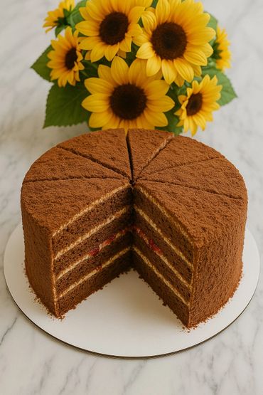 Chocolate Honey Cake features tender layers of cocoa-infused honey sponge paired with a smooth, creamy filling. Rich, moist, and perfectly balanced, it's a delightful twist on a traditional favorite.